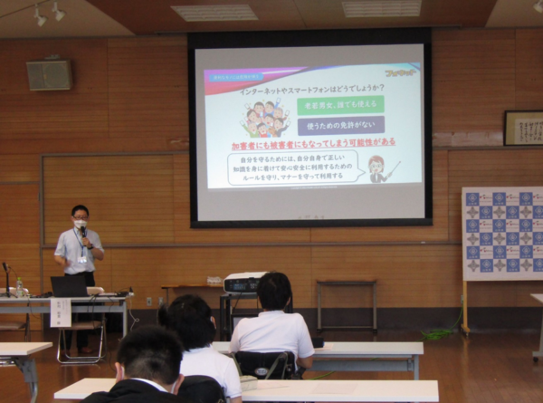 講演後には、代表生徒から「自分の言動に気を配り、スマホなどを上手に利用していきたい」といった感想が発表がされました。