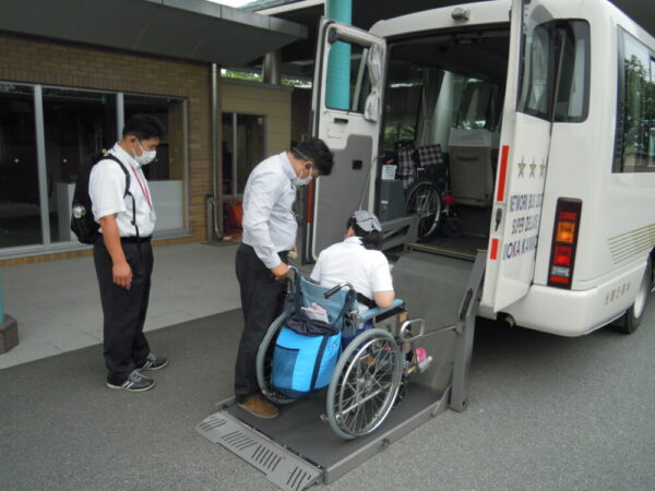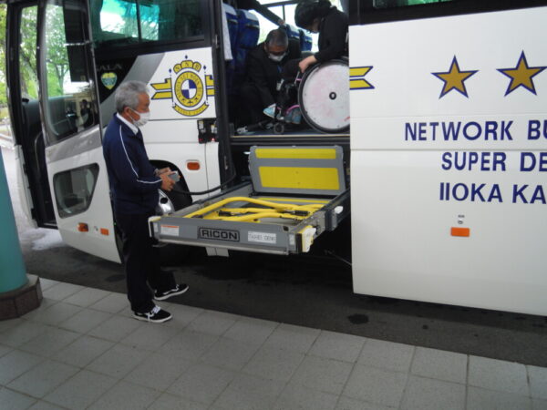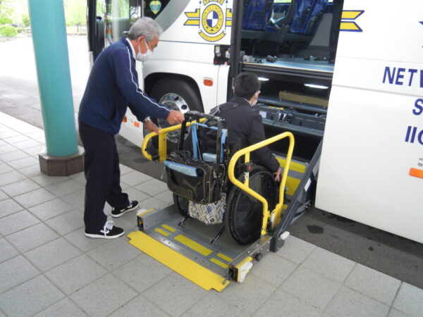 だいぶ以前の話になるかもしれませんが、県内にリフト付きバスは数台しかなく、利用のために各学校で日程調整をしたり、通常のバスを利用して教員が抱えて乗降したり・・・という時代もあったと覚えています。