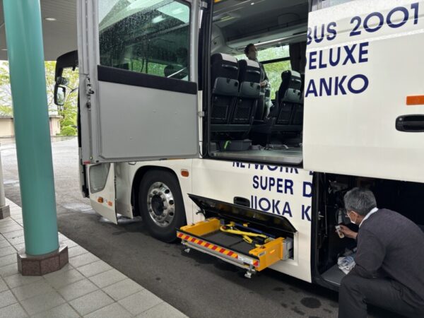 中には、まだまだ新車だそうで、装備されているリフトもとてもスタイリッシュで機能的なデザインのバスもありました。