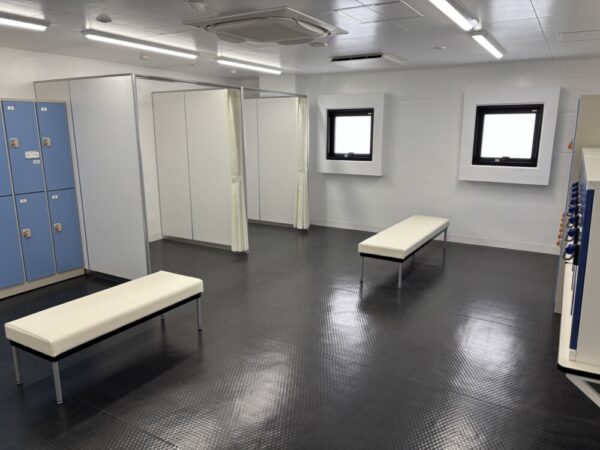 点字ブロックや音声案内、車いす対応トイレなどバリアフリー施設で、体育館と多目的室、事務室、救護室、シャワー室などを備えています。