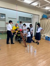 6月27日、韮崎西中学校の福祉ボランティア委員会のみなさんと中学部が交流しました。ボーリングをしたり、風船バレーをしたり、各グループでとても楽しく過ごしました。