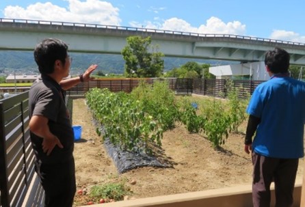 社屋の屋上農園。このほかにも農園があり、レストランで使う食材を栽培しています。
