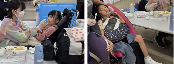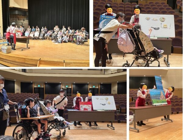 午後は、図書館の職員さんの読み聞かせです。何冊か絵本を読んでもらい、途中に手遊び歌やパネルシアターを見せてもらいました。パネルシアターのホットケーキはとてもおいしそうでした。