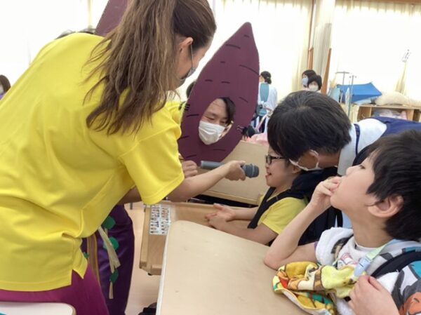 子どもたちは、さつまいも掘りの模擬体験やクイズを通して、楽しみながら学ぶことができました。