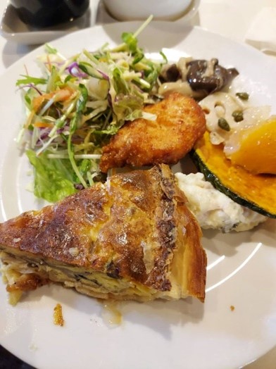 また、様々な食形態にも対応していただけるようです。昼食で頂いたキッシュプレートとケーキバイキング、美味しくいただきました。
